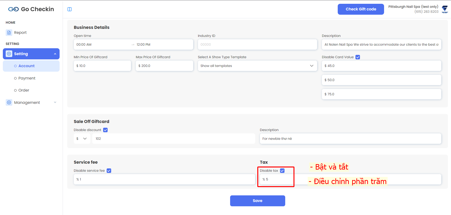 • Có thể bật/tắt hoặc chỉnh phần trăm như hình dưới